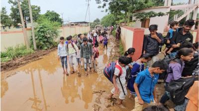 तेज बारिश ने सरकारी स्कूल को बनाया तालाब, बच्चों को गोद में उठाकर बाहर ले गए अभिभावक