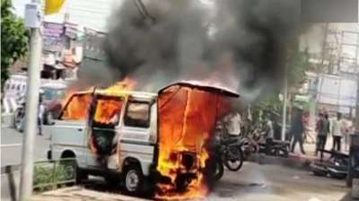 दर्दनाक हादसे के बाद भड़की भीड़, वैन को लगाई आग, दो युवकों की गई जान
