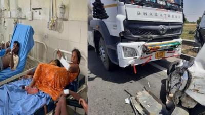 केएमपी एक्सप्रेस वे पर भीषण हादसा: कैंटर की टक्कर से 4 मजदूरों की मौत, 32 घायल