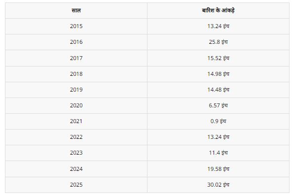 बीते 10 साल ही नहीं बल्कि जबलपुर में बीते 100 सालों का इतिहास भी हम देखें, तो मौसम विभाग के अधिकारी डीके तिवारी के अनुसार "1930 में जबलपुर में 1137 मिलीमीटर बारिश दर्ज की गई थी. जो कुल मिलाकर 44 इंच से भी ज्यादा है. उसके बाद बीते 95 सालों से जबलपुर में कभी भी जुलाई के महीने में 30 इंच बारिश नहीं हुई.