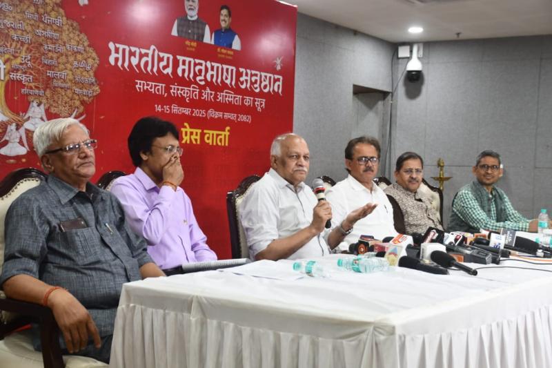 भोपाल। राष्ट्र के निर्माण में भाषाओं के योगदान पर केन्द्रित दो दिवसीय भारतीय मातृभाषा अनुष्ठान का आयोजन 14-15 सितंबर 2025 को रवीन्द्र भवन, भोपाल में किया जा रहा है। भारतीय मातृभाषाएँ सभ्यता, संस्कृति और अस्मिता का सूत्र हैं। माननीय मुख्यमंत्री डॉ. मोहन यादव भारतीय मातृभाषा अनुष्ठान का मार्गदर्शन करेंगे। इस अनुष्ठान में खड़ी बोली हिन्दी में अवधी, ब्रज, भोजपुरी, मैथिली, बुंदेली, मालवी, छत्तीसगढ़ी व बघेली तथा कन्नड़, मलयालम, तेलुगु, बांग्ला, तमिल और हिन्दी का अंतरसंबंध, भाषा और संचार प्रौद्योगिकी, हिन्दी साहित्य और प्रौद्योगिकी, नाटक और सिनेमा की भाषा, नृत्य और संगीत की भाषा, जनजातीय एवं धूमंतु भाषा-संचार, राष्ट्र की प्राणधारा लोकभाषाएँ जैसे विविध विषयों पर केन्द्रित वैचारिक समागम में देश-प्रदेश के भारतीय भाषाओं के विशेषज्ञ-विद्वान सम्मिलित होंगे। इसके साथ भारतीय भाषाओं एवं बोलियों में काव्य गोष्ठी, प्रकाशन लोकार्पण तथा प्रदर्शनियाँ शामिल है। यह जानकारी माननीय मुख्यमंत्रीजी के संस्कृति सलाहकार एवं वीर भारत न्यास के न्यासी सचिव श्रीराम तिवारी एवं संस्कृति संचालनालय के संचालक एन. पी. नामदेव ने प्रेस वार्ता को संबोधित करते हुए दी। वीर भारत न्यास के न्यासी सचिव श्रीराम तिवारी ने कहा कि भाषाएँ किसी भी राष्ट्र की आत्मा और निर्माता होती हैं। भारत जैसे विविधतापूर्ण देश में भाषाओं की भूमिका केवल संवाद का माध्यम नहीं है, बल्कि यह हमारी संस्कृति, परंपरा और ज्ञान की धरोहर भी हैं। राष्ट्र निर्माण में भाषाएँ वह सूत्र हैं जो समाज के विभिन्न वर्गों, प्रांतों और पीढ़ियों को एक साथ जोड़ती हैं। उन्होंने कहा कि आज आवश्यकता इस बात की है कि हम भारतीय भाषाओं के अध्ययन, लेखन, शोध और व्यवहार को प्रोत्साहित करें ताकि आने वाली पीढ़ियाँ अपनी सांस्कृतिक अस्मिता के साथ गर्वपूर्वक आगे बढ़ें। भाषाओं का संरक्षण और संवर्धन ही आत्मनिर्भर, सशक्त और सांस्कृतिक रूप से समृद्ध राष्ट्र निर्माण का आधार है।