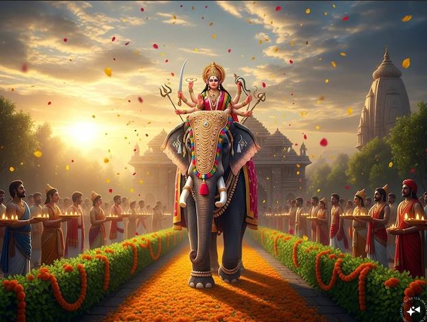 मां दुर्गा की हाथी की सवारी के संकेत