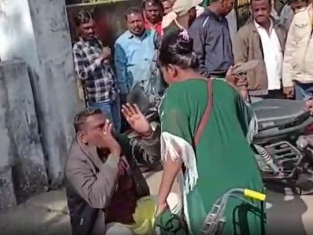 बीच सड़क पर हंगामा, युवक से माफी मंगवाती महिला का वीडियो वायरल