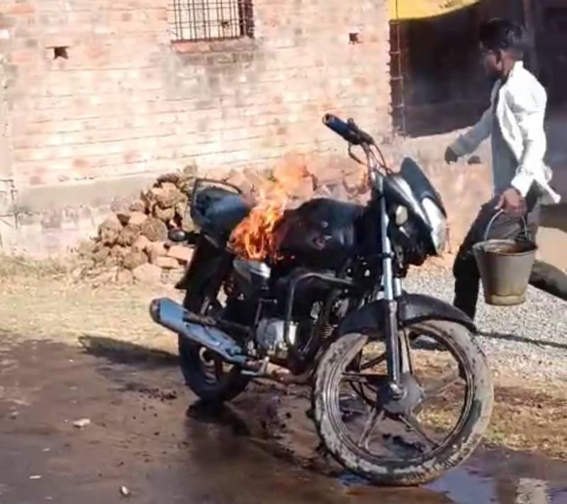 पुरानी रंजिश में युवक ने पेट्रोल डालकर फूंकी बाइक, इलाके में मचा हड़कंप