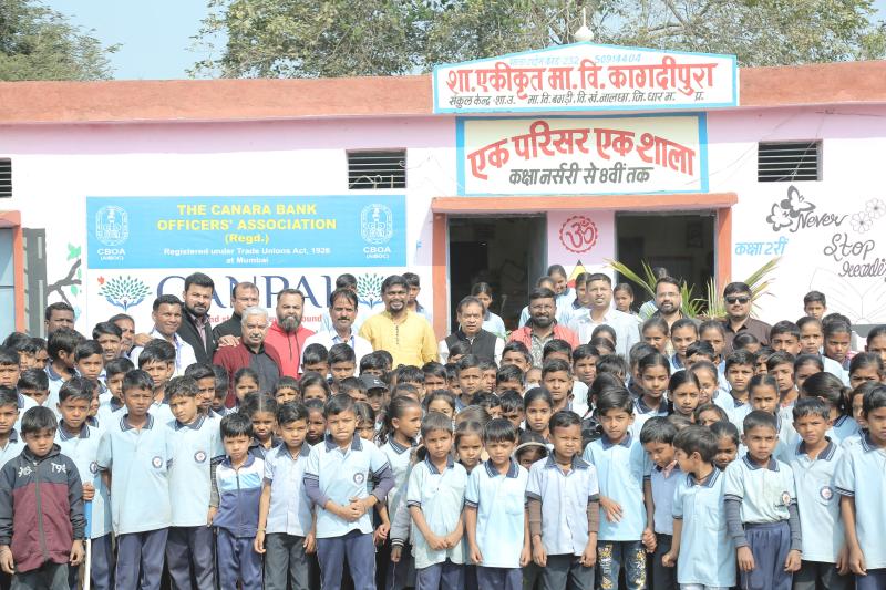 धार। केनरा बैंक ऑफिसर्स एसोसिएशन (CBOA) के जनरल सेक्रेटरी श्री के. रवि कुमार जी ने केन पाल के बैनर तले धार जिले के नालचा ग्राम स्थित एक स्कूल शासकीय एकीकृत माध्यमिक विद्यालय कागदीपुरा में छोटे-छोटे बच्चों को अध्ययन सामग्री और खेल का सामान भेंट कर एक प्रेरणादायक पहल की। यह केवल सामग्री का वितरण नहीं था, बल्कि उन नन्हे सपनों में विश्वास और आत्मविश्वास भरने का एक सशक्त प्रयास था। इस सामाजिक कार्य में सी बी ओ ए के वाइस प्रेसिडेंट श्री के. के. त्रिपाठी जी, स्कूल के प्रिंसिपल सुभाष यादव, सीबीओ ए के मनीष चतुर्वेदी, राहुल सोनी, कुणाल गावड़े, अंकुश, नीरज सोनी, शिव परवानी और कृष्णगोपाल जी तथा केनरा बैंक नालछा शाखा से कौशल सिंह की सक्रिय सहभागिता रही। सभी साथियों ने बच्चों के साथ समय बिताया, उनका उत्साह बढ़ाया और उन्हें आगे बढ़ने की प्रेरणा दी।