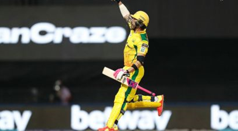 मुल्डर ने 40 गेंदों में 5 चौके और 2 छक्के के साथ 147.50 की स्ट्राइक रेट की मदद से 59 रन बनाए। इसके अलावा जे जे स्मट्स ने भी अर्धशतकीय पारी खेली। उन्होंने 34 गेंदों में 4 चौकों और 4 छक्कों की मदद से 161.76 की स्ट्राइक रेट से 55 रन बनाए।