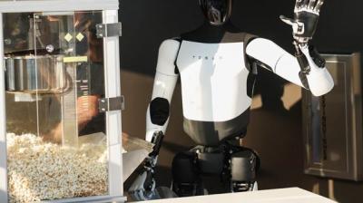 अरबपति टेस्ला का रोबोट बेच रहा है, पॉपकॉर्न
