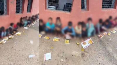 MP शासकीय स्कूल में मिड-डे मील का खाना जमीन पर परोसा गया, मामला वायरल