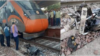 वंदे भारत ट्रेन और बाइक सवार के बीच टकराव टला, यात्रियों को झटका लगते ही हड़कंप मच गया