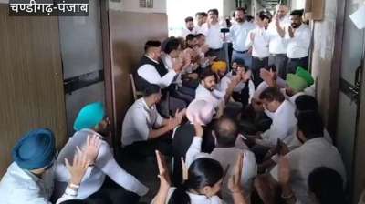 होशियारपुर में वकीलों और सहायक लेबर कमिश्नर के बीच विवाद, दफ्तर के बाहर धरना