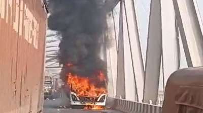 पटना के महात्मा गांधी सेतु पर बस में लगी भीषण आग, यात्रियों ने कूदकर बचाई जान